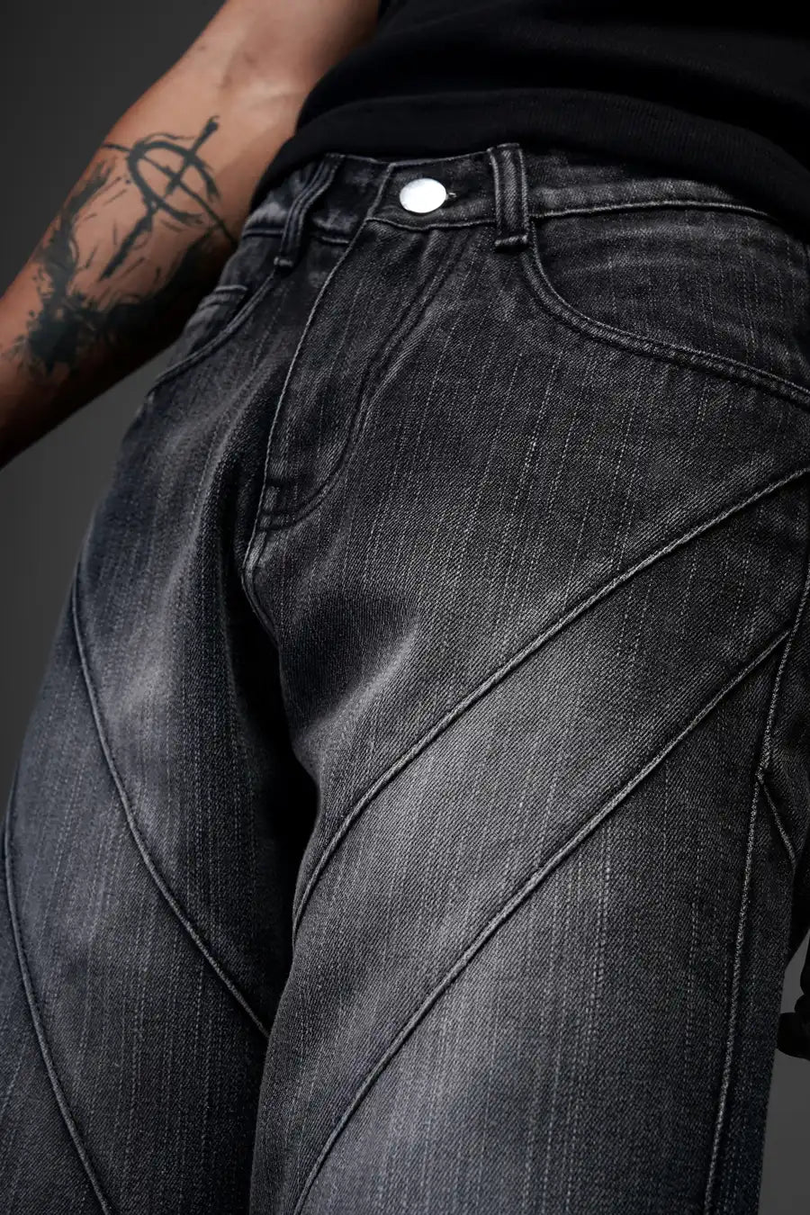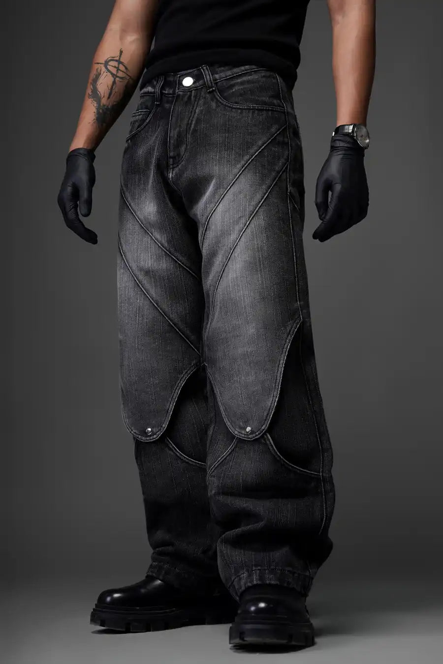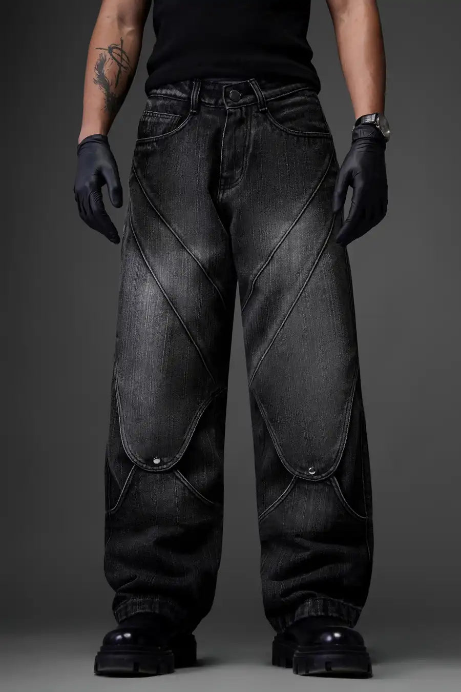 The tailored design features a modern baggy fit that flatters all body types, while subtle detailing enhances their timeless appeal. With reinforced stitching and functional pockets, Black Elixir Jeans reflect Monkbreed’s dedication to quality. Elevate your everyday style with this essential piece that effortlessly complements any outfit.